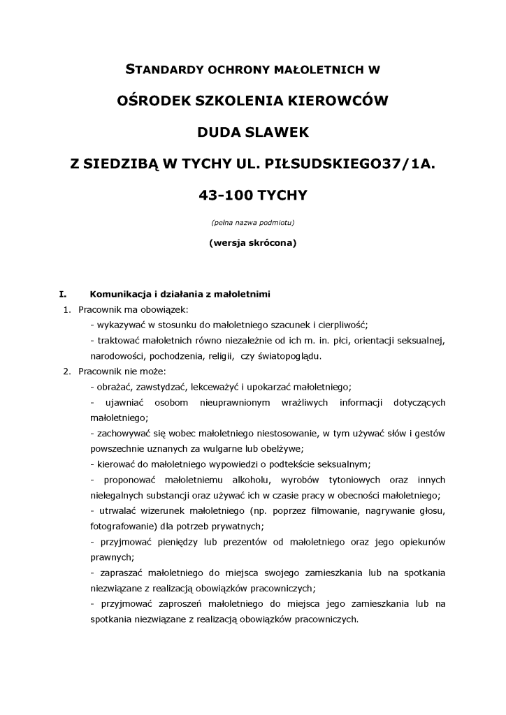 STANDARDY OCHRONY MAŁOLETNICH WERSJA SKRÓCONA